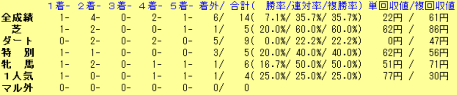 での成績で、1人気は1頭勝たれてしまいましたが、他3頭は4着以下でした。